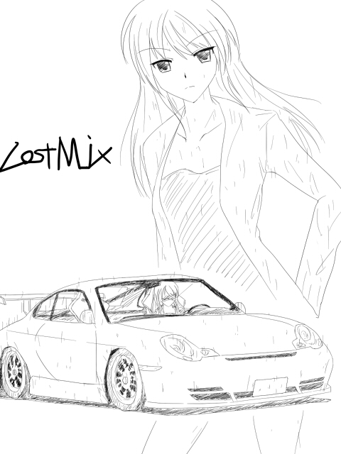 今日もいつものラクガキ (1) http://rimi.ria10.com/Entry/21/ -------------------------------------------------------------------- 時間が余ったからもう1枚ラクガキ。 HSGより、チーム『OverclockGirl』 ”北条院 零”の996 GT3cupです。 設定では大企業となっている北条院グループの娘で、かなりの金持ち。 10年前の西関東で起きた戦争を再び起こらせようと企んでいる。後の争いとなる元凶。 一応は高校生なので、昼間はチームのメンバーと共に学校で勉強している。 元ネタとなっている「オーバークロックガール」では、ボケ混じりの高飛車な委員長キャラである。 HSGでは高飛車を維持しつつ、より腹黒な性格となっている。 戦争の企みについても、チームメンバーの心境を利用しメンバーと共に西関東の峠を制圧しに行く。 (芹乃 ⇒ 父が成し得なかった事を達成するため、父の敵) (逢理 ⇒ 芹乃が心配のため、共に協力) (百子 ⇒ 各地の争いを収束させるため) (静香 ⇒ つまらない日常に飽き、面白そうだから) マシンは、資金力をありったけとつぎ込んだ”PORSCHE 911 GT3cup” GT3カップのレースカーを公道用にデチューンしたマシン。 タイヤをスリックに履き替え、そのままレースにも出れるというチートマシン。 普段はSタイヤを履いている。 マシンがマシンな為か、狭くバンピーな峠は苦手。 --------------------------------------------------------------------- とかなんとか。 設定だけまともに出来てて、一向に物語が始まらないHSGでございます。 このまま漫画を描かずに終わりそうな予感。 ---------------------------------------------------------------------- 【同日の日記】