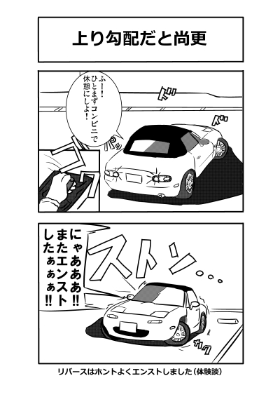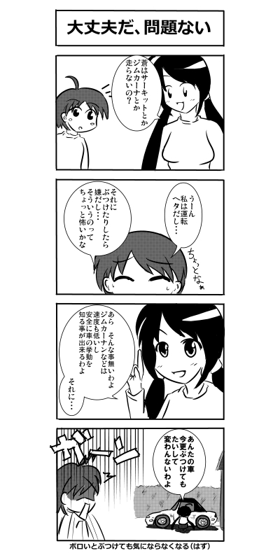 第5話 第6話 今回のように、時々4コマが混ざります。 -------------------------------------------------------- 第7話~第8話 ⇒ http://rimi.ria10.com/Entry/49/ -------------------------------------------------------- HSGや闇路という本格走り屋漫画の企画もあるのですが、なかなか進まずに難航しているので、