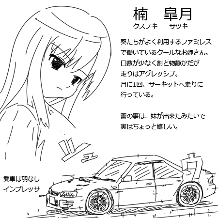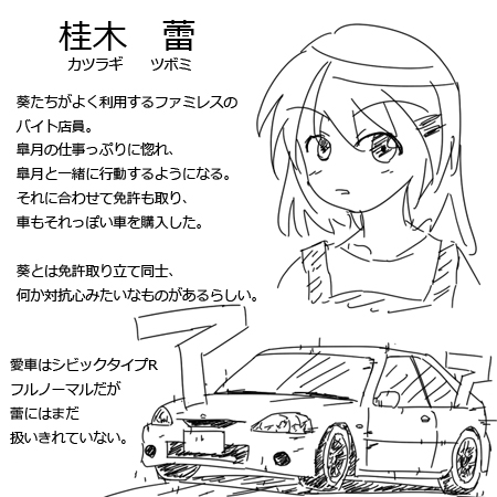 --------------------------------------------------------- 次の更新はおそらく27日(金) キャラ紹介の漫画も描きつつ、物語を進めていきます。 物語つっても、車好きの女の子達がただ車をネタに雑談してるだけですけど。 予定としては、ドリフトっ娘やジムカーナっ娘が登場して ドリフトやジムカーナを体験するお話にしていきたいところ。 ------------------------------------------------ PR 第7話