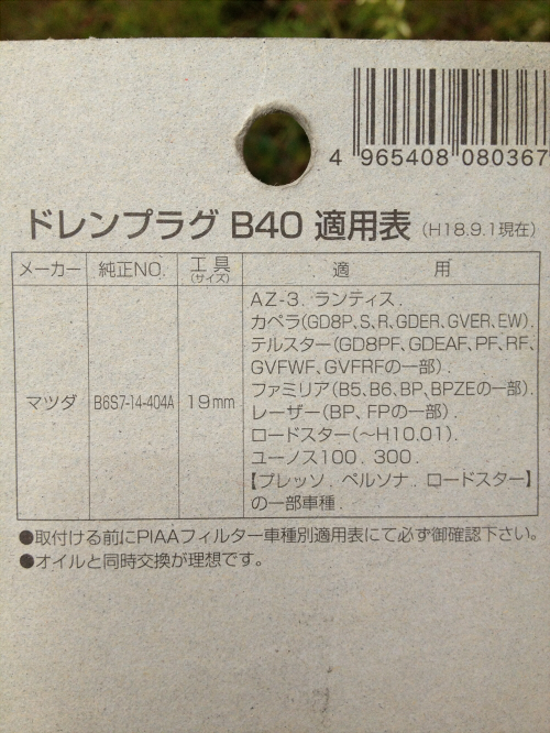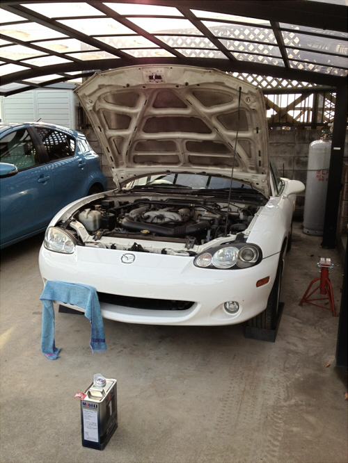 当日が楽しみやでー。 よっぴーも来てくれるそうなんで、改めて後ほど連絡します。 さて、今日はオイル交換をしようと思う。 前回交換が2011年9月23日……もう1年と3ヶ月交換していない事になります_ノ乙(、ン、)_ 走行距離自体は4500kmしか走っていませんが、さすがに1年以上交換していないのはまずいと思って交換に踏み切りました。 オイルは昨日買ってきたこれ。 Mobile1 AWP 5W-40 ロードスターに定番の5W-40、ブランドは好きなモービル1。 化学合成油100%です。 値段は某ホームセンターで4980円、ヤフオクでも4200円とかだったので送料や時間を考えても大差無かったので購入を決定。 その他、ドレンボルト(パッキン付)や廃油ポイ等を購入。 こちらは小銭で買える程度。 画像のボルトは使用済みのものです。 ところが、交換後に気づいたのですが 実はこれ、NAロードスター用だったのだ。 何故気づかなかったし…… NBロードスターのドレンボルトはB17mm×M14×P1.5である。 対してNAロードスターは、径やサイズは同じものの、B19mm。 購入したものは、そのB19mmのモノ。 使用済みのボルトを17mmメガネで外して、新しいボルトを19mmメガネで装着ってなんかおかしいと思ったんだよ…… とはいえ、径とサイズが同じなら特に問題は無いようなので(機械工学科出身より) しばらくこのボルトで滲みが無いようならこのままにしておこうかと。 さて、オイル交換をはじめる前に。 ジャッキを車に潜らせます。 (にーさん借りるでー) ロードスターの場合、純正車高でも正面から入れるとジャッキが入りません。 なので斜めから入れます。 ちなみに、ジャッキを使う前にスロープだけでやろうとしたら スロープから車が落ちました。メゲるわ…… ロードスターのフロントジャッキポイントはここ。 NA・NB同様です。 ジャッキで車を持ち上げてスロープを入れたらゆっくりと降ろす。 純正車高なのと、俺自身が痩せ型のチビであることから、スロープだけでも下に潜り込めます。 (油温は大体60度前後でした) これが4500km走行し、1年3ヶ月も交換しなかったオイル。 この車の交換サイクルは7500kmなのですが、さすがに1年と3ヶ月も交換しないとここまで酷くなるみたいです。 一般の人よりブン回しますからね。 オイルが抜けきったら新しいドレンボルトを装着し、新しいオイルを上から入れます。 この辺は省略。 ただし、オイルゲージで量をちょこちょこ確認しないと大変な事になりますので、 規定量オーバーはNGです。 規定量を入れたらエンジンをかけて終了です。 本当は今日中に雨漏りの修理とメーターパネルのズレ修復をする予定だったが 15時を過ぎるとすごく暗くなってきたので作業は明日に持ち越し。 今まで週1~2でしか乗らなかったのに、昨日と今日と明日と明後日も乗ることに……。 (木曜日は南千葉サーキットに行く予定) 【今日の教訓】 ・オイルは走行距離でなく、日数で交換すべし(3ヶ月~6ヶ月) ・商品の説明は隅から隅までしっかりと読むべし ・カンをアテにするな、ゲージで確認しながらオイルを入れるべし ------------------------------------------------ 最近、毎日絵を描くようになってから絵が上達したような気がします。 以前から散々言われていましたが、絵の上達は毎日絵を描くことだと実感。 仕事もあるし1日に絵を描く時間は限られるけど、この習慣を頑張って続けていきたいと思う。 何よりお金がかからないしね。 お金がかからない趣味って素晴らしい。 沢山の人にもコメントを貰えて、楽しいです。 それはさておき車のお話。 OSLジムカーナは本当にどうしよう。 参加するとお財布の中がかなり厳しい状況になるが、やらずに後悔するよりやって後悔という気持ちもある。 でも南千葉でサイドターン練習&ドリフト練習もしたい。 おまけに、22日は茨木中央サーキットでフリー走行もある。 どれに参加するか本当に迷う。 理想は平日に南千葉→日曜日にOSLが望ましいが…… お財布にそこまでの余裕できるかどうか……。 --------------------------------- 久しぶりに車に乗ったが、やはり車の運転はとても楽しい。 楽しいと思えるのもこの車だからこそなのかもしれない。 実を言うと、クルマに乗るのは2週間ぶりである。 いや、正確には運転するのは3週間ぶりだ。 クルマで移動する機会もないから、週1でエンジンを10分間かけていたのだが 先週は一度もエンジンをかけなかった。 丸々2週間エンジンをかけなかった事になった訳だが、果たしてエンジンがかかるのが心配だった。 でも心配はいらなかった。 11月も下旬に入り、ひたすら寒い日々が続くにも関わらずすぐにエンジンはかかる。 ああ、このクルマは本当にいいクルマだ。 本当は今日もエンジンをかけるだけの予定だったのだが 3週間も運転していないとすっかり忘れているんじゃないかと心配になった。 ブレーキローターもすっかりサビついていて、このまま動かさないままだと他の部分まで痛んでしまいそうだった。 そんな事から、睡眠から起きてたった15分